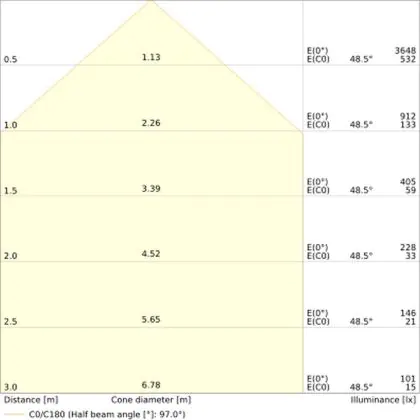 Der Abstrahlwinkel bezeichnet den Winkel, in dem das Licht aus der Lichtquelle ausgestrahlt wird. Er wird in Grad (D) angegeben. Je geringer die Gradzahl des Abstrahlwinkels ist, desto kleiner ist auch der Durchmesser des Lichtkegels, den die Lichtquelle produziert.
