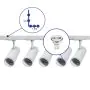 Description Ensemble complet Rail Monophasé Rail L 1,5 x 2 Mètre Blanc | incl. 5x Spot + GU10 2700K 3W Dimmable + Embout, Connecteur d’Alimentation et L -Connecteur