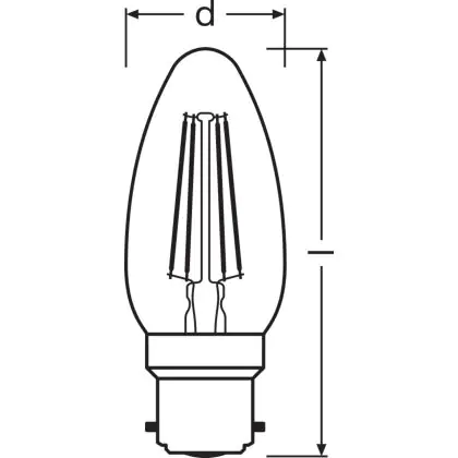 Description Ledvance Classic Performance LED Ampoule B22d Bougie Filament Claire 4W 470lm - 827 Blanc Très Chaud | Équivalent 40W