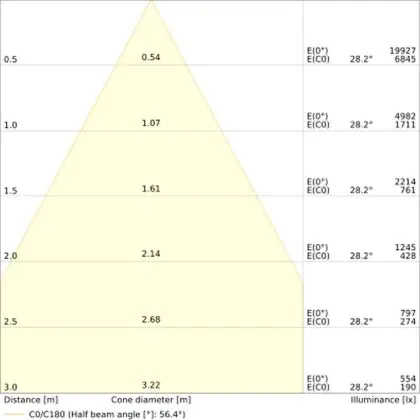 • Angle de diffusion: 55 °