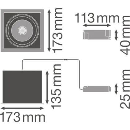 Description Ledvance Spot LED Carré inclinable Noir-Blanc 30W 2700lm 36D - 830 Blanc Chaud | Diamètre 164mm