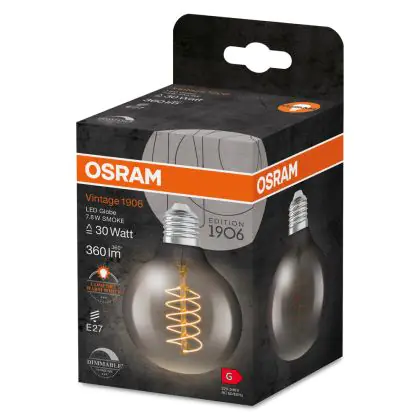 Cette ampoule Ledvance Vintage 1906 LED E27 Globe Smoke 7.8W 360lm - 818- | Dimmable - Remplacement 30W avec son efficacité lumineuse de lumen par watt vous permettra de profiter d’un éclairage de qualité. Avec sa durée de vie de 15000 heures, vous n’aurez pas à vous soucier de son remplacement avant quelques années.