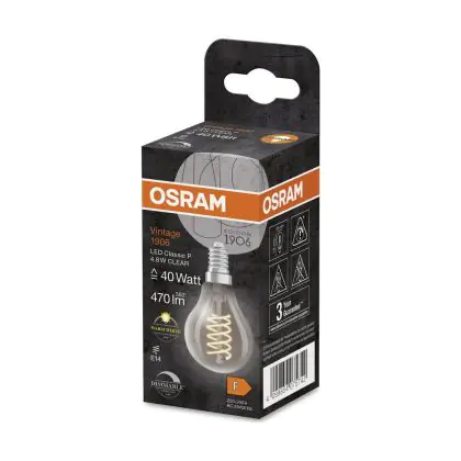 Cette ampoule Osram Vintage 1906 LED Classic E14 Poire Filament Claire 4.8W 470lm - 827 | Dimmable - Remplacement 40W avec son efficacité lumineuse de lumen par watt vous permettra de profiter d’un éclairage de qualité. Avec sa durée de vie de 15000 heures, vous n’aurez pas à vous soucier de son remplacement avant quelques années.