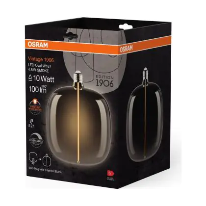 Cette ampoule Osram Vintage 1906 LED E27 Special Filament Smoke Tall 4.8W 100lm - 818 | Dimmable - Remplacement 15W est l’alternative idéale pour la remplacement de votre ampoule classique de 15 W. La technologie LED intégrée vous offrira de nombreux avantages. Les ampoules à incandescence traditionnelles ont une durée de vie limitée. Cette alternative LED vous permettra de profiter d’un éclairage durable et fiable.