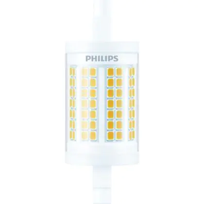 Philips LED Linear R7s CorePro 78mm 11.5W 1521lm - 830 |Remplacement 100W est une ampoule tubulaire linéaire à double extrémité. Ce type d’ampoule permet de délivrer une lumière homogène à 360° avec comme température de couleur 3000K - Blanc Chaud. Cette ampoule LED R7s de chez Philips est la solution idéale pour le remplacement de vos anciennes ampoules halogènes. Cette ampoule LED n’a pas besoin de transformateur, elle fonctionne avec 230V et peut se connecter directement sur le secteur électrique.