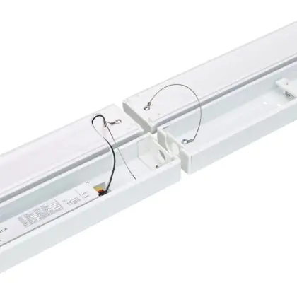 La réglette LED, Philips Réglette LED CoreLine BN126C 49W 6400lm - 840 Blanc Froid | 120cm - 1x Câblage Traversant est conçue pour remplacer les réglettes TL-D traditionnelles et permettant d’économiser jusqu’à 50% d’énergie. Très souvent utilisé pour l’éclairage d’entrepôts, d’usines, de parking et d’autres grands espaces extérieurs. Très simple d’installation, cette réglette de 120cm peut se fixer au plafond et au mur et projette 4000K - Blanc Froid, comme couleur de lumière. La Philips Réglette LED CoreLine BN126C 49W 6400lm - 840 Blanc Froid | 120cm - 1x Câblage Traversant dispose d’un indice de protection IP20 à l’eau et la poussière et d’une résistance aux chocs IK04.