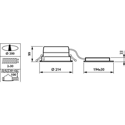 Description Philips Spot encastrable LED LuxSpace Compact bas DN570B 16.5W 2200lm 80D - 830 | 214mm - Dimmable - Aluminium Réflecteur - Power Over Ethernet