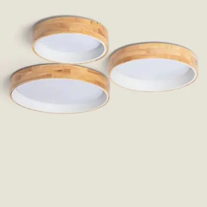 Plafonnier Ronde Bois Métal Blanc 15W 1000lm - 830-840-860 CCT