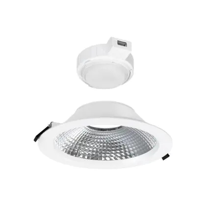 Les spots LED encastrables (aussi appelés Downlights) sont des solution éco-énergétiques permettant de remplacer les spots classiques équipés de technologie à fluorescence. Ce downlight Spot Encastrable LED Réflecteur 13.5/18.5W 1800/2400lm 90D - 830/840 CCT | 250mm - Diamètre 225mm est conçu pour remplacer un spot classique de 46. La consommation de ce downlight LED est considérablement plus faible qu’un luminaire classique, à savoir, seulement 18.5 watts. Une économie d’énergie sans compromettre la qualité de la lumière. Le flux lumineux est de 2400 lumens. La lumière de ce downlight LED est diffusé à 90 degrés et offre un bon rendu des couleurs. La durée de vie moyenne de ce luminaire LED est de 50000 heures.
